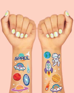 - Kids’ tattoos – cute, colourful, and made with skin-safe ink that parents trust.